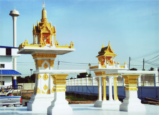 ทรงไทยหน้าตรง (หินขัด) สีทอง พร้อมโต๊ะบูชา
